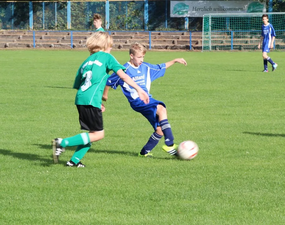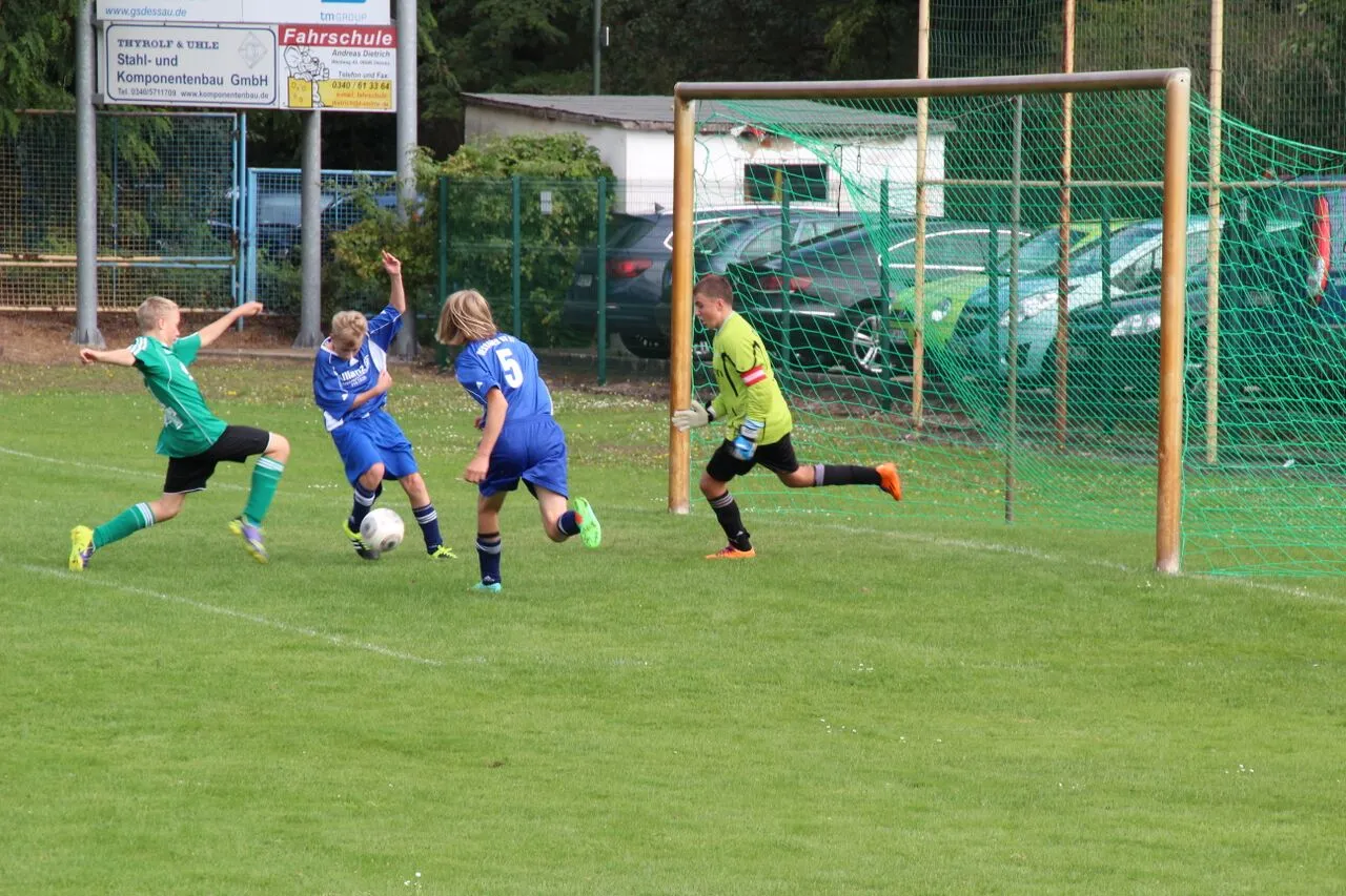 Das zweite Spiel unserer C Junioren stand unter anderen Vorzeichen, da sich das Team der Trainer Meye/Pelzel mit drei neuen Spielern verstärken konnte. Alle drei Spieler wurden sofort in das Team integriert und bekamen ihre Chance, von Anfang an zu spielen. Von der ersten Minute an entwickelte sich ein spannendes Spiel. Bereits nach 3 Minuten sorgte Neuzugang D. Benckenstein mit einem guten Schuss für die erste gute Chance unserer Mannschaft. Die Gäste aus Reppichau waren zunächst im Mittelfeld stärker, doch am Strafraum war Endstation. In der 9. Minute tankte sich erneut Benckenstein über die rechte Seite durch und passte scharf in den Strafraum der Gäste. Dort konnte Neuzugang S. Junqueiro den Ball aus dem Gedränge über die Linie stochern, 1 : 0 Führung. Nur eine Minute später wieder Benckenstein mit einem guten Pass auf N. Kaczinski der promt auf 2 : 0 erhöhen konnte. Trotz des Doppelschlags schüttelte sich Reppichau nur kurz und übernahm, insbesondere durch das starke Mittelfeld, nun das Spiel und war stest gefährlich. In der 16. Minute konnte unsere Abwehr einen Angriff nicht unterbinden und ließen Gästestürmer P. Schröter frei zum Schuss kommen. Dieser war so platziert, dass Torwart K. Schlosser nicht den Hauch eine Abwehrchance hatte. Unser Spiel wurde nun sehr zerfahren. Mit zu vielen langen Bällen wurde nun ständig versucht, Neuzugang D. Benckenstein in Szene zu setzen. Ein Zusammenspiel der einzelnen Mannschaftsteile war überhaupt nicht mehr festzustellen. Trotzdem wurde auf unserer Seite bis eine Minute vor dem Halbzeitpfiff gut verteidigt bis plötzlich ein Pfiff des jungen Schiris ertönte und dieser, zur Verwunderung aller , selbst der Gäste, auf Strafstoß für Reppichau entschied. Eine plausible Begründung dafür konnte er nach dem Spiel allerdings nicht abliefern. Reppichau ließ sich dieses Geschenk nicht nehmen und stellte den zu diesem Zeitpunkt, nicht unverdienten Ausgleich für die Gäste her. Halbzeit. Die Halbzeitansprache von den Trainern war klar und deutlich. Jeder merkte, dass bei mehr Einsatz- und Laufbereitschaft viel mehr möglich war. Insbesondere das taktische Verhalten einzelner Spieler musste verbessert werden. In der zweiten Hälfte dann wieder der DSV am Drücker. Das Spiel wurde besonders in unserem Mittelfeld nun viel besser. Und so konnten in kurzer Zeitfolge reihenweise Chancen erarbeiten werden, doch auch die Besten davon wurden nicht genutzt. Außerdem hatte Gästetorwart E. Schröter einen überragenden Tag, parierte mehrmals großartig und hielt sein Team damit im Spiel. Eine 2 oder gar 3 Tore Führung wäre möglich gewesen. Reppichau kam in der 43. Minute das erste Mal zu einem guten Angriff. Die verunglückte Flanke von der rechten Seite landetet auf der Latte. In der Folge konnte der Ball nicht geklärt werden und so nutzte Reppichau diesen Fehler und erhöhte auf 2 : 3. Danach war es von beiden Seiten ein offener Schlagabtausch, mit den besseren Chancen für den DSV. Doch eine unglückliche Abwehraktion in der 53. Minute brachte den Gästen durch ein Eigentor von S. Panousis die 2 Tore Führung ein. Das stellte den eigentlichen Spielverlauf in der zweiten Hälfte zwar auf den Kopf, doch so ist Fußball. Unsere Jungs ließen den Kopf nicht hängen, und so konnte D. Benckenstein in der 57. Minute durch ein tolles Solo den Anschlusstreffer erzielen. Danach dann noch zwei riesen Chancen zum Ausgleich oder sogar zur Führung. Doch der Ball wollte einfach nicht rein. Und so brachte Reppichau die Führung über die Zeit und konnte sich, auch auf Grund der aus unserer Sicht klaren Fehlentscheidung des Schiris und unserer stellenweise fahrlässigen Chancenverwertung, über einen glücklichen Auswärtssieg freuen. Fazit: Im Gegensatz zum ersten Spiel war eine deutliche Steigerung unseres Team zu sehen. Das taktische Verhalten und das Zusammenspiel von Abwehr und Mittelfeld muss verbessert werden. Vor allem aber beim Torabschluss muss man cleverer werden.