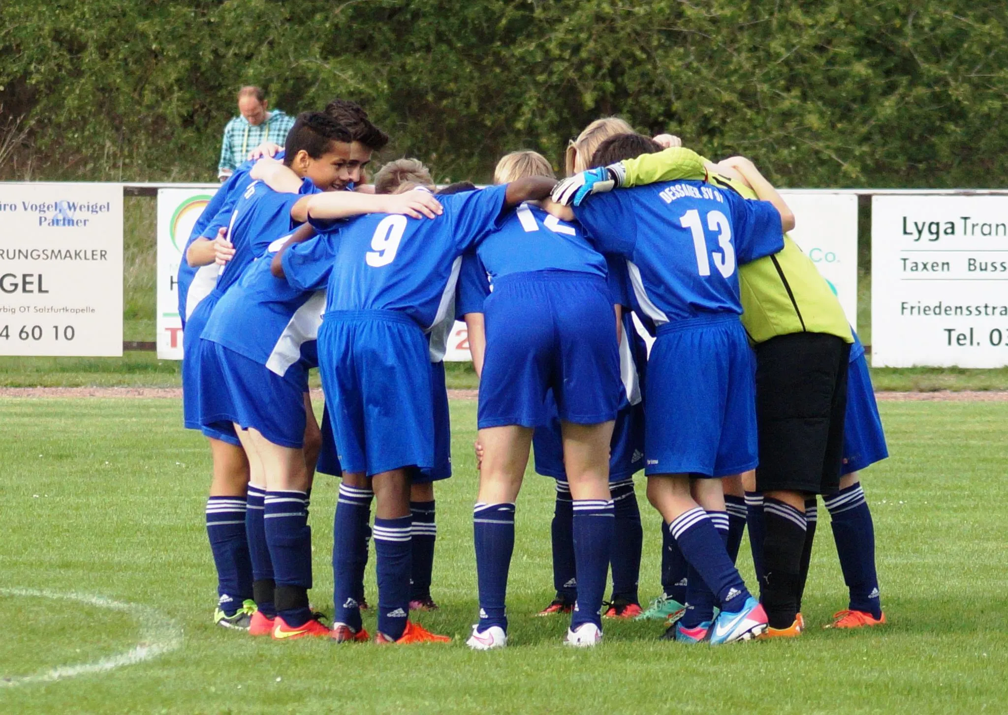 Das erste Mittwochsspiel der Saison konnten unsere Jungs deutlich mit 11 : 2 bei der Spg. Salzfurtkapelle/Fuhnetal gewinnen. Vor dem Spiel nahm zunächst Geburtstagskind Tim Jobst die Glückwünsche des gesamten Teams zum Ehrentag entgegen, bevor es dann ernst wurde. Den folgenden deutlichen Sieg gegen einen phasenweise überforderten Gegner, wollen die Trainer Meye/Pelzel allerdings nicht überbewerten. Doch für das Selbstvertrauen unserer Mannschaft war dieser Erfolg enorm wichtig. In den ersten Minuten des Speils war unser Team leider mental und körperlich noch nicht in Salzfurtkapelle angekommen. Die Gastgeber setzten dabei die ersten Akzente und es bedurfte erst eines weithin hörbaren "Anschisses" durch Trainer Pelzel an das gesamte Team bevor ein Ruck durch die Mannschaft ging und die Kontrolle über das Spiel übernommen wurde. Der Ball wurde laufen gelassen und so begann nach fünf Minuten der Torreigen für unsere Mannschaft. Bis zur Halbzeit sorgten unsere Stürmer D. Benckenstein mit 3 und N. Kaczinski mit 2 Treffern, sowie R. Zabel mit einem Treffer für eine 1 : 6 Halbzeitführung. Lediglich eine Unaufmerksamkeit in der Abwehr führte in der 23. Minute zum Tor für die Gastgeber. In der Halbzeit wurde die Mannschaft aufgefordert, weiter Druck zu machen. Insbesondere sollten sich die Außenverteidiger mehr mit in das Geschehen einschalten. Das wurde sehr gut umgesetzt und so bestimmte man auch die zweite Hälfte klar. In die Liste der Torschützen trugen sich erneut D. Benckenstein und N. Kaczinski ein, die insgesamt mit je 5 bzw. 3 Treffern aufwarten konnten. Der sichere Vorsprung ließ Spielraum für einige Auswechslungen und Umstellungen und so zeigten auch die frischen Spieler, dass sie sich sofort in das Team integrieren können. Dabei konnte sich unser jüngster Spieler M. Lübeck gut in Szene setzen und erzielte in der 50. Minute verdientermaßen den 9. Treffer für den DSV. Ein Missverständnis in der Vierer Abwehrkette führte in der 61. Minute zum zwischenzeitlichen 2 : 9. Den Endstand von 2 : 11 stellte dann K. Gengelbach in der 70. Minute her. Fazit: Nach dem schlafmützigen Beginn der Partie, spielten unsere Jungs den Gegner zeitweilig an die Wand. Überragende Spieler waren mit 5 Treffern und 3 Torvorlagen D. Benckenstein sowie N. Kaczinski mit 3 Treffern und 1 Torvorlage. Aber auch das gesamte Team nutzte die Schwächen des Gegners konsequent aus und so geht der Sieg, auch in dieser Höhe, in Ordnung.