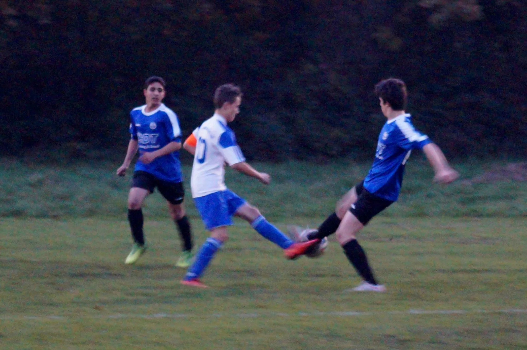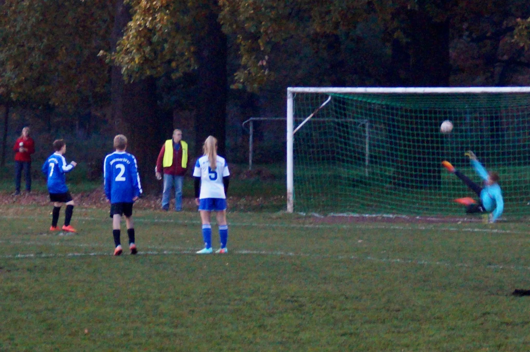 Im vorgeholtem Punktspiel am heutigen Mittwoch Abend, mussten sich unsere Jungs dem Tabellenführer aus Waldersee mit 3 : 1 geschlagen geben. Trotz der katastrophalen Platz- und Lichtverhältnisse zeigte unser Team, vor allem in der ersten Hälfte, ein sehr engagierte Leistung. Die Trainer hatten taktisch auf ein 4 : 2 : 3 : 1 umgestellt, was die Mannschaft sehr gut umsetzte. Mit vielen guten Spielzügen gelang es uns immer wieder, aus einer guten Abwehr heraus, den Spitzenreiter in Bedrängnis zu bringen. Schon in der 5. Minute konnte einer dieser Angriffe nur durch ein (zweifelhaftes) Foul im Strafraum gestoppt werden. Eric Schmitkamp verwandelte sicher zur Führung. In der Folge waren die Gastgeber im Spielaufbau zu ungenau und eröffneten damit immer wieder Kontermöglichkeiten für unser Team. Doch der letze Pass, auch den schlechten Platzverhältnissen geschuldet, kam nicht an. Die wenigen Möglichkeiten die Waldersee hatte, konnten durch Torwart Kenneth Schlosser allesamt vereitelt werden. In der zweiten Halbzeit drehte der Tabellenführer dann auf und spielte seine Stärken konsequent aus, sodass am Ende der 3 : 1 Sieg auch in Ordnung geht. Fazit: Unser Team hat sich teuer verkauft. Vor allem an die tolle Leistung in der ersten Hälfte gilt es anzuknüpfen, wenn es am 7.11., dann im letzten Spiel der Hinrunde, zu Hause gegen Tabellennachbarn FV Merzien geht.