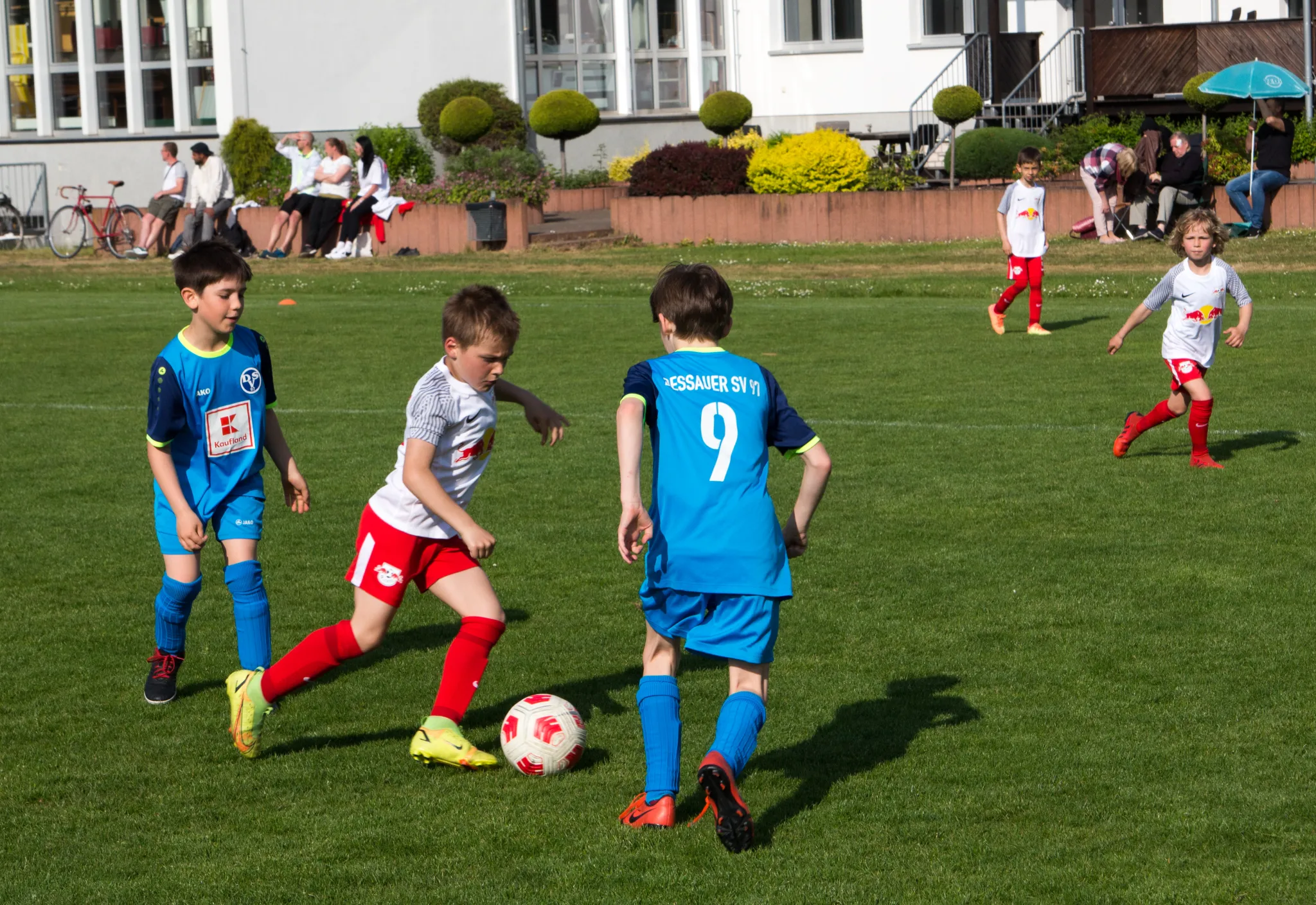 Insgesamt sollten wir 4x15 Minuten spielen, also 20 Minuten mehr als üblich. Dazu spielten alle Kids parallel ein Funino Spiel, also immer 3vs3 gegen die RB Kids. So war immer was los und alle kamen auf massig Spielzeit. Hier im Spielbericht soll aber „nur“ auf das klassische Spiel eingegangen werden, was wir im übrigen im 5-1 spielten, dadurch kam es natürlich zu vielen Ballaktionen, tollen Zweikämpfen und dutzenden Chancen.