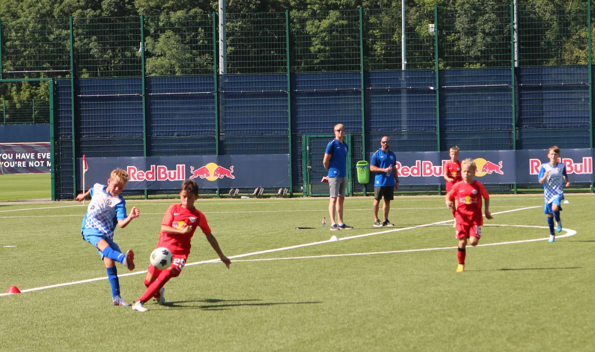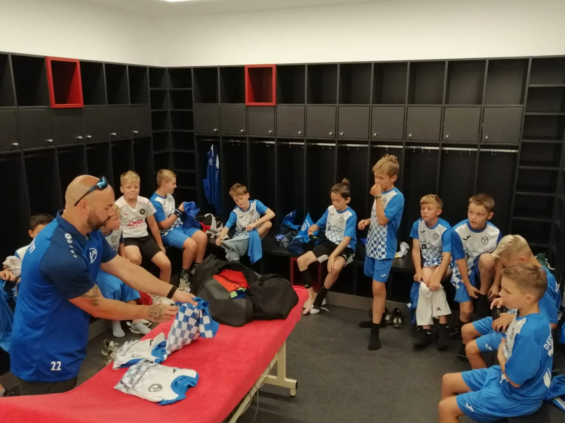 Da wir letztes Jahr mit unserer F Jugend gegen die U9 von Leipzig mehr als überzeugen konnten, ging es als Belohnung erneut nach Leipzig, diesmal gegen deren U10. Mit gerade einmal 2 kompletten Trainingseinheiten und einem vereinsinternen Testspiel gegen die eigene D Jugend (1:2 verloren) war man zwar nicht ideal vorbereitet, aber auch Leipzig ist erst seit 2 Wochen im Training. Man spielte 6-1, nicht wie in unserer Liga 7-1 und auf ein verkürztes Kleinfeld. Von unserem E1 Kader fehlte im Prinzip nur Linus, der uns allerdings schon fehlte, besitzt er doch einen angeborenen Torinstinkt. Aber die 12 Jungs die heute mit waren, waren mehr als motiviert. Diesmal ging es an die Profi und Nachwuchsakademie Trainingsstätte an den Cottaweg. Supermoderne Kabinen ließen uns etwas Profiluft schnuppern und motivierten uns zusätzlich.