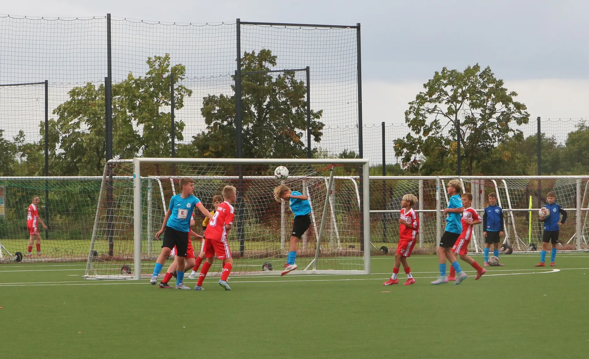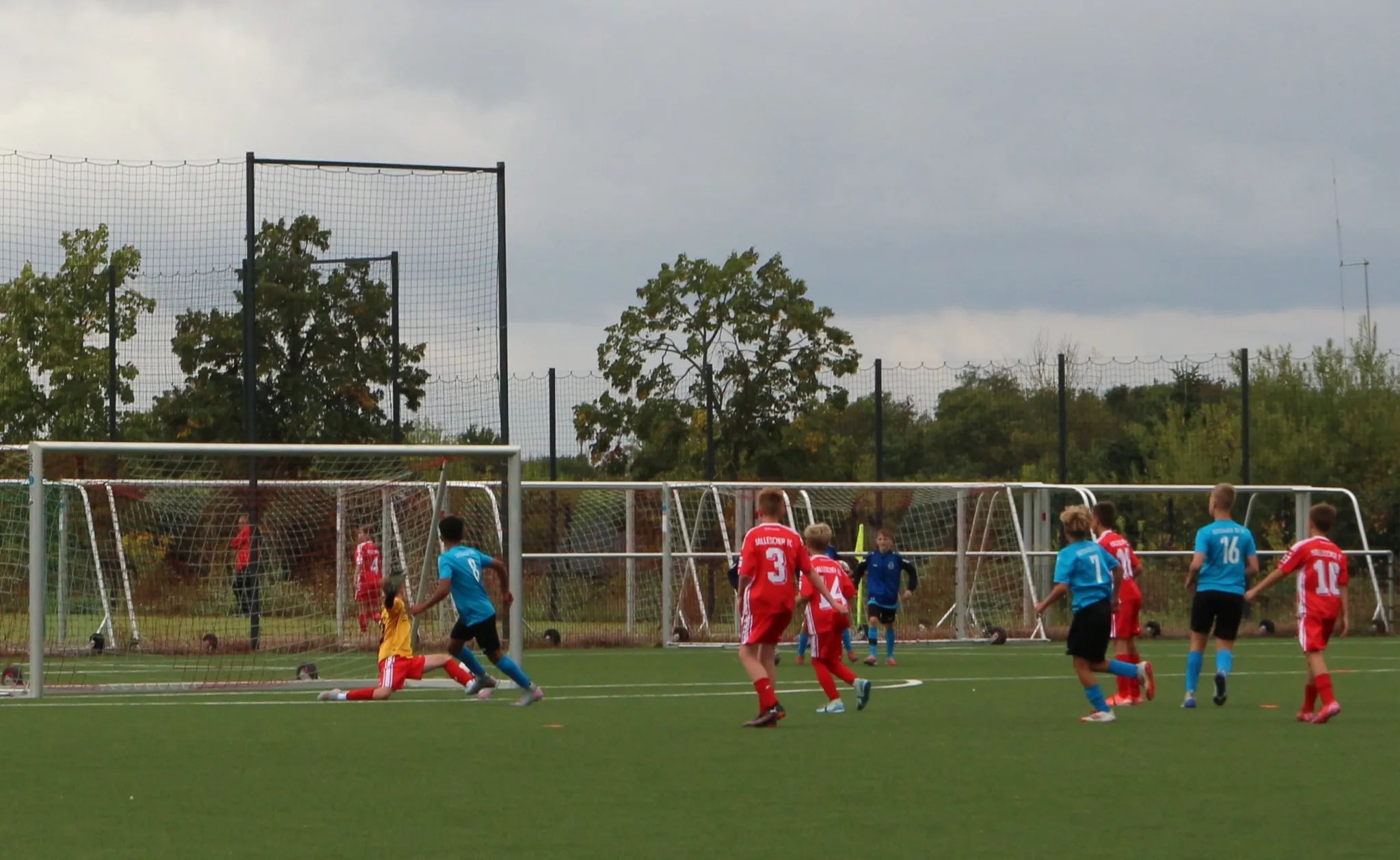 Allerdings fuhr Halle die Gegenwehr etwas hoch und so dauerte es gar nicht lang bis zum 1:2 Anschlusstreffer. Nun gehört sowas zum Lernprozess und kann passieren. Wichtig war, wie wir darauf reagierten. Wir wurden wieder aktiver und eroberten ganz viele Bälle in Halles Hälfte. Die größte Chance hatte Hans, der den Pass vom Torwart eroberte und leider aus knapp 25m das leere Tor verfehlte. Kurze Zeit später war es aber soweit. Wieder starke Balleroberung, Hans wartet lange um dann Hannes einzusetzen, aber nicht zu lange, denn Hannes bleibt eiskalt aus 8m und netzt zum 3:1. Nun schwanden die Kräfte bei den tapferen HFC Jungs und wir blieben aktiv. Nachdem Emilian erst noch am Pfosten scheiterte, war es Yosef in Folge eines Phelan Freistoßes der das verdiente 1:4 erzielte. Kurz vor Schluß kam Halle nach einerm Fernschuß noch zum 4:2. Danach wurde es noch einmal ein bisschen unruhiger, aber wirklich nur kurz, dann stabilisierten wir wieder und schoben nach vorne und das Spiel trudelte dem Ende entgegen.