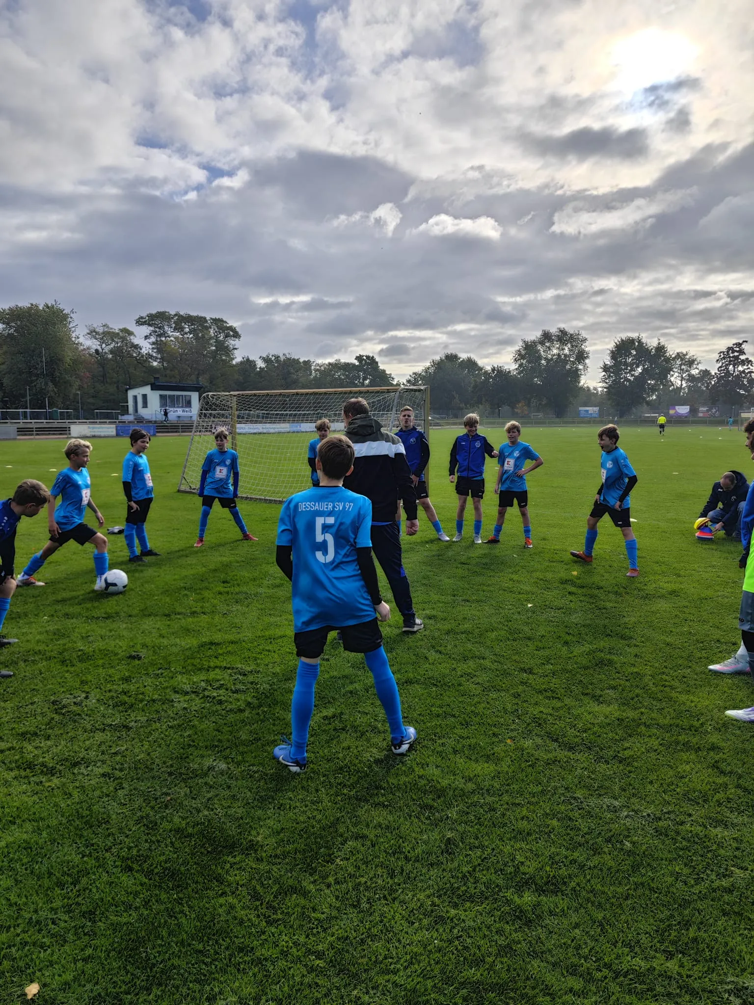 Nur 2 Tage nach dem erfolgreichen Pokal Achtelfinale, ging es für unsere jungen Verbandsligakicker wieder nach Wittenberg zu GW Piesteritz, zum vorgezogenen 5. Verbandsligaspieltag. Da man in der 1. Pokalrunde gegen Piesteritz gespielt hatte, wussten diese natürlich wie wir spielen und nahmen taktisch einige Anpassungen aus den 90ern vor, Manndeckung und lang und weites Spielprinzip, legitim, wenn auch nicht so attraktiv. Wir starteten aber wieder gut in die Partie, gleich nach 2 Minuten die erste Halbchance, Piesteritz klärt zur Ecke. Diese Ecke schlagen wir nicht schlecht, aber der Piesteritzer Keeper fängt sie stark im Herauslaufen ab (Hut ab!). Den Ball schlug er sogleich lang, hinten waren wir zwar zu 2. aber der springende Ball erwischte uns eiskalt, der Piesteritzer setzte sich robust aber fair durch, unser TW blieb im Tor und ein Strahl von Schuß ging an die Latte und von da knapp hinter die Linie. Eiskalte Dusche für unsere Jungs, die zum ersten Mal diese Saison in Rückstand gerieten. Toll war, wie wir darauf reagierten. Wir blieben absolut spielbestimmend und kombinierten viele Chancen heraus. Die erste hatte Hannes, quasi vom Anstoß weg, nagelte er den Ball mit links an die Latte. Dies solle Startsignal für einen wahren Sturmlauf werden. Die erste Chance quasi von Piesteritz selbst, schießt scharf im klären auf sein Tor, der Tw hält bravorös, Linus mit der Nachschußchance, aber aus 5m setzt er seinen Linksschnuß knapp daneben. Wir blieben dran, wieder Linus, heute gut im kombinieren eingebunden scheitert am wieder starken Keeper im 1:1 vor dem Tor. Die 3. Chance von Linus und wieder scheitert er nur knapp. Das waren auch nur unsere Riesenchancen, zwischendurch unzählige Ecken und viele Schüße die der super Keeper sicher hielt. Dann wieder mal eine Sahne Flanke von Philip, Yosef köpft und trifft aus 4m nur die Latte. Wir drückten so sehr, dass sogar Abwehrchef Phelan sich nach vorne einschaltete und nach einer ganz tollen Kombination aus 16m zum Schuß kam, der auch wieder stark gehalten wurde. Interessanterweise ließ der SR in der 1. HZ 5 Minuten nachspielen (später dazu mehr). In diesen 5 Minuten waren wir quasi zu 90% in Piesteritz Strafraum, aber immer war ein Bein oder etwas anderes dazwischen. Piesteritz wirklich nur auf Konter aus und vermauerte mit 6 Mann den Strafraum.