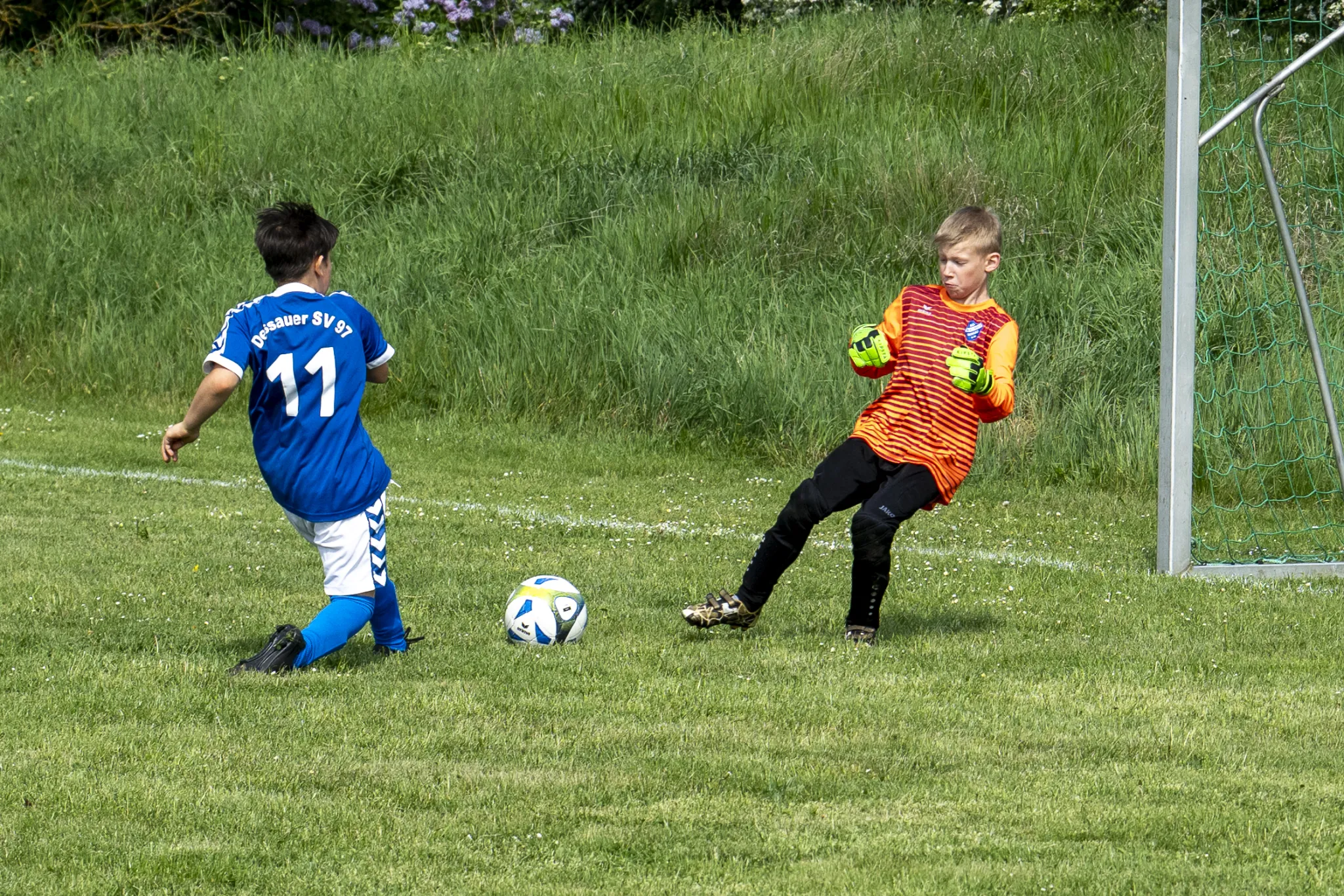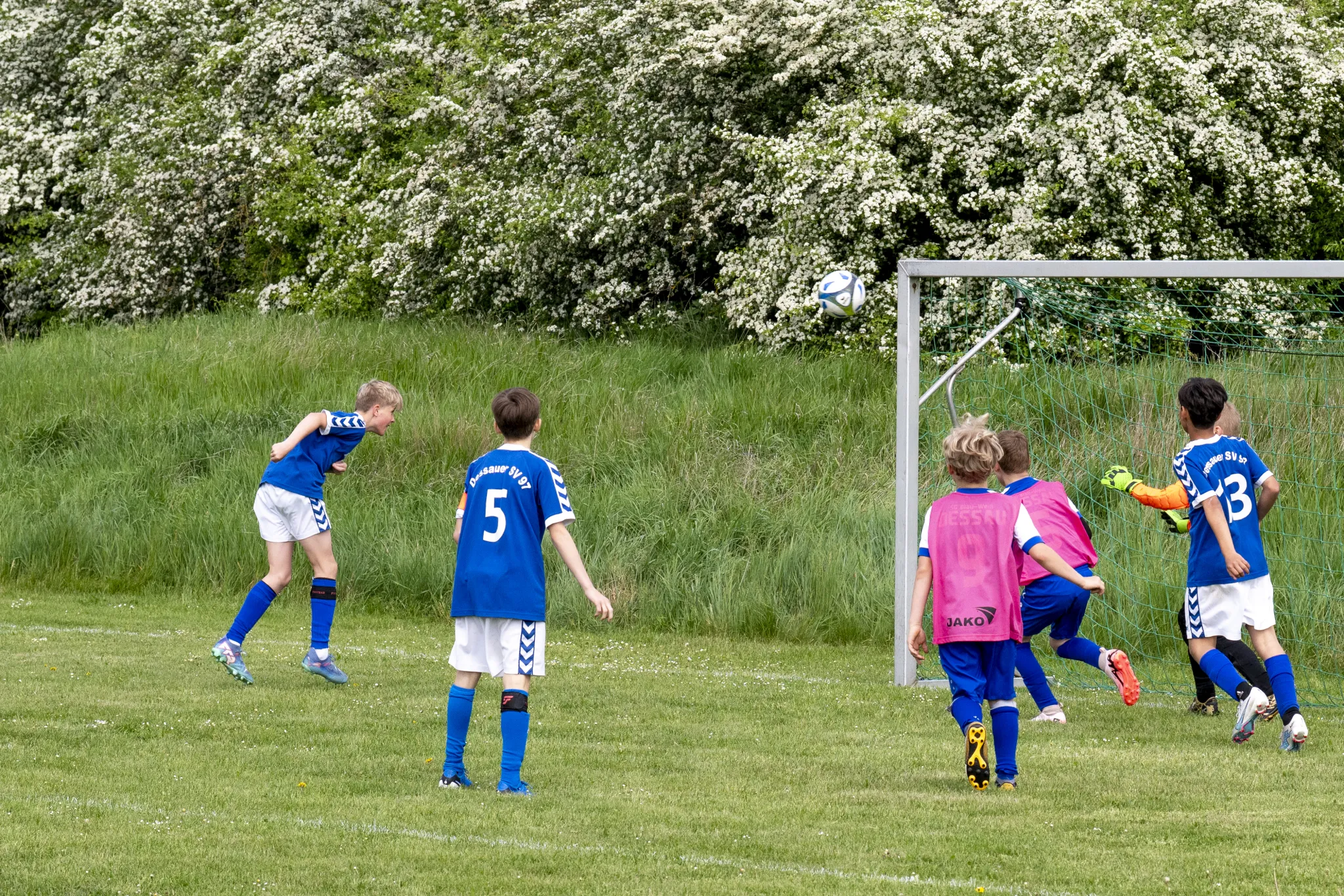 2 Tage nach dem epischen Pokalspiel gegen 05 ging es wieder in den Alltagsmodus. Da man ungeschlagener Kreismeister werden will, gilt es jeden Gegner ernst zu nehmen und die junge Blau Weiß Truppe gehört da auch dazu. Man hatte auch diesmal 10 starke Kids am Start und wollte gleich zu Beginn zeigen wo es lang geht. Allerdings machte es uns Blau Weiß nicht einfach, sie waren giftig und bissig in den Zweikämpfen, schoben auch immer gut in Richtung Ballseite und so hatten wir wenig Platz. Da die öffnende Seitenverlagerungen am Anfang noch nicht praktiziert wurden, dauerte es 5 Minuten bis Liam Hannes fand und der trocken zum 0:1. Danach das gleiche Spiel, wir etwas zu kompliziert und zu umständlich, teilweise auch zu langsam und so blieb das Spiel zwar nicht ausgeglichen, aber auch nicht komplett einseitig. Es war ein beherztes Nachsetzen von Dario was das 0:2 brachte. Das 0:3 dann Marke Traumtor und Liam hatte sich für sein 200. DSV Tor (ohne Turniere) ein sehr schönes aufgehoben, aus ca. 15m schießt er und der Ball senkt sich ins Kreuzeck, toll. Ein Hannes Solo und ein schöner Abschluss von Dave sollten die 0:5 Halbzeitführung bringen.