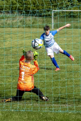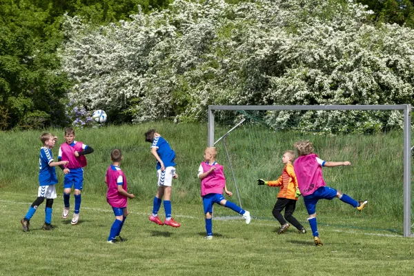 Trotzdem war man zur Halbzeit nicht zufrieden und forderte mehr Tempo und Spielfreude. Dies sollte in Halbzeit 2 gelingen, eine mega Flanke von Dave erreichte Hannes, der per Kopf toll zum 0:6 traf und danach erobert Liam den Ball, passt zu Mehmet und der mit schönem Schuß zum 0:7. Danach passierte treffertechnisch erst einmal nicht viel, aber man spielte gut und ließ Ball und Gegner laufen. Das 0:8 dann wieder per Kopf, diesmal von Alex, der toll in eine Hannes Ecke geht und das danach folgende Nasenbluten für dieses erste Karrierekopfballtor gerne in Kauf nahm. Nach kurzer Behandlungspause durfte er dann auch wieder rein und bereitete das 0:9 von Dario mit tollen Einsatz und Pass vor. Pepe mit etwas Glück dann beim 0:10, sein Fernschuss wird abgefälscht und landet im Tor. Den Schlusspunkt setzte Dario, nachdem Liam an der vielbeinigen Abwehr gescheitert war.