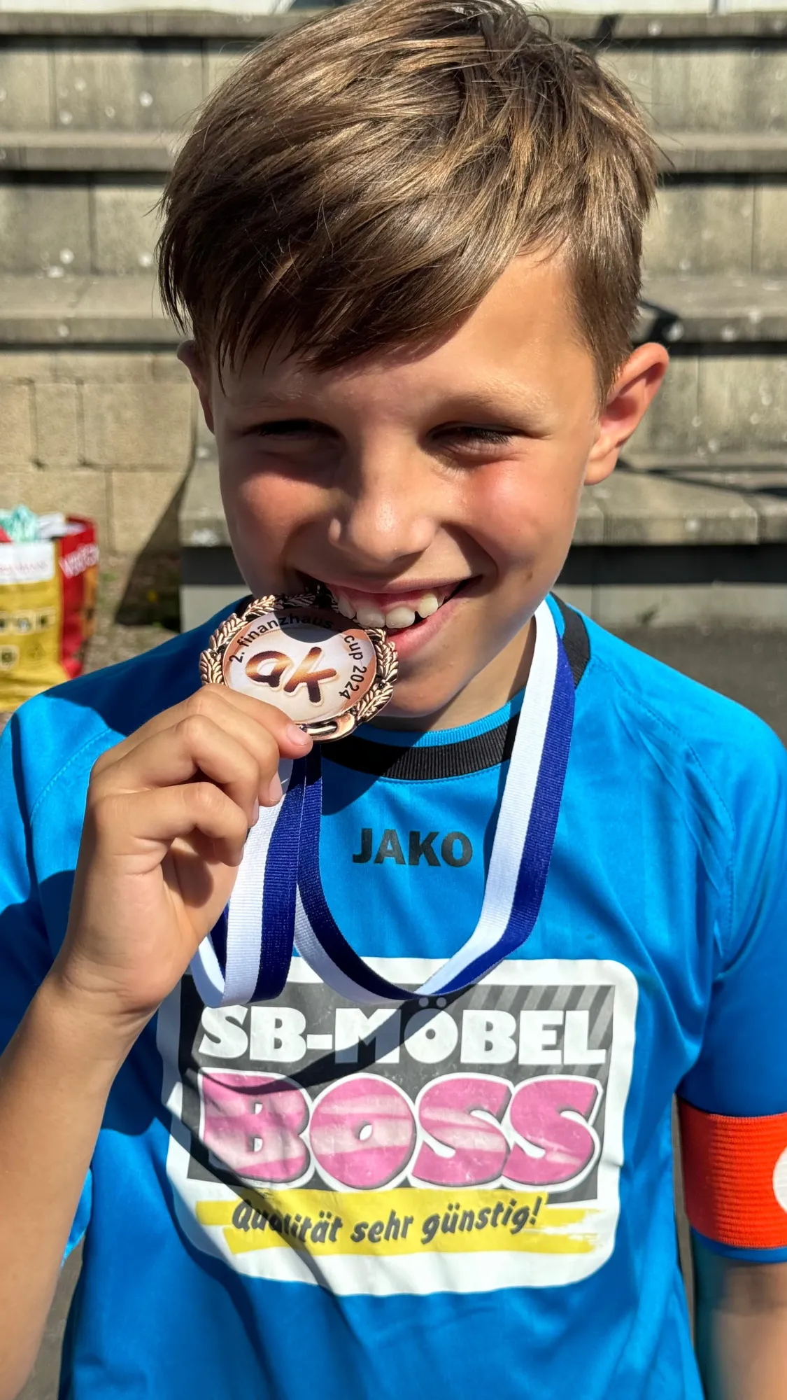 Man brauchte 2 Minuten bis man im Spiel war, aber dann....eine Traumkombination über Hannes, Liam, der schickt Nevio, direkt zu Dario und der eiskalt zum 1:0. Kurz später, Flanke Yosef, Kopfball Dario – 2:0 – danach noch eine Glanzparade von Alex und schon war der 1. Sieg da – was für ein Turnierstart!