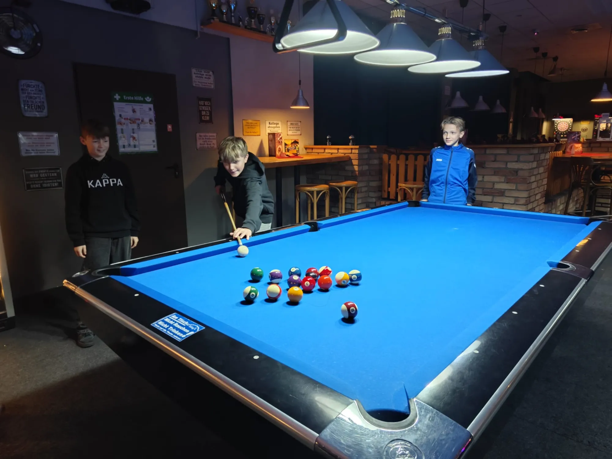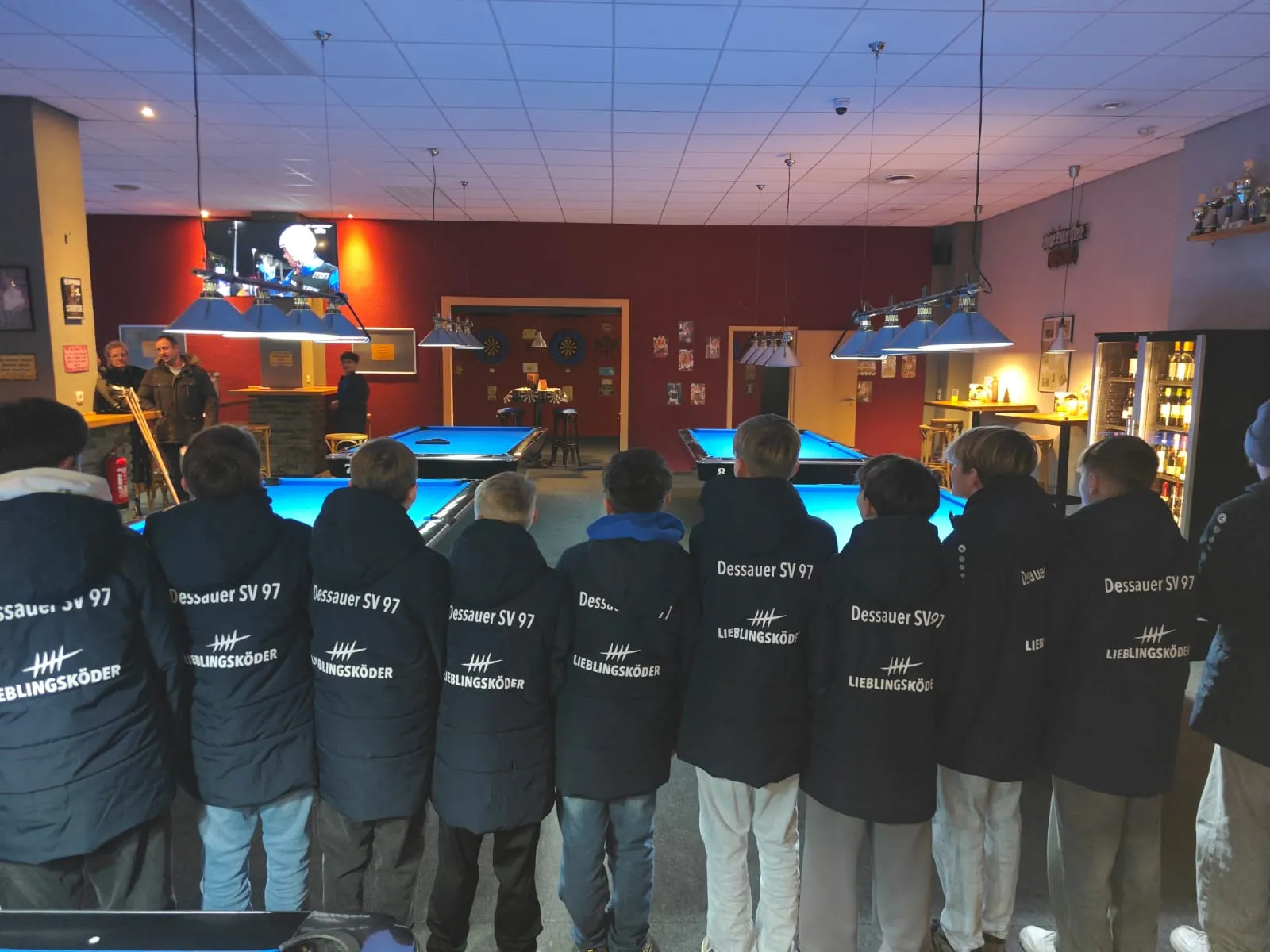 Am vorletzten Freitag feierte unsere D1 nach einer überragenden Hinserie ihre verdiente Weihnachtsfeier. Dazu mieteten wir uns in das Billardcafe "Eddys" ein, wo die Jungs ihre Skills im Billard, Tischkicker und Dart miteinander messen konnten. Eine willkommene Abwechslung zum sonstigen Fußballbetrieb.