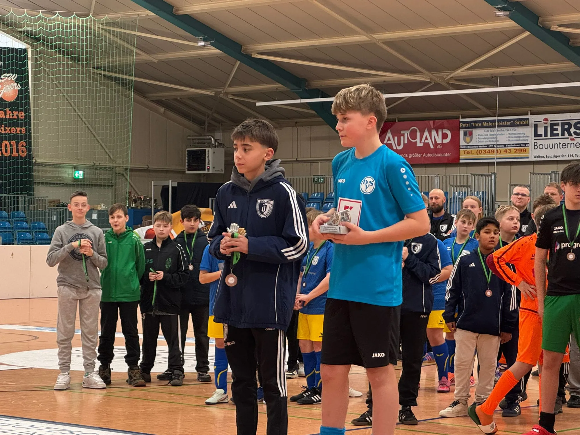 Am gestrigen Samstag ging es in die wunderschöne Ballsporthalle Sandersdorf. Ein Hallenturnier mit Rundumbande ist einfach noch um ein vielfaches attraktiver. Wir spielten in diesem Turnier wirklich fabelhaften Fußball, ließen Ball und Gegner laufen und erzielten tolle Tore. Das wir auch die starken Teams vom HFC U13 und Eintracht Wiederitzsch deutlich besiegten, spricht für die hervorragende Form an diesem Tag