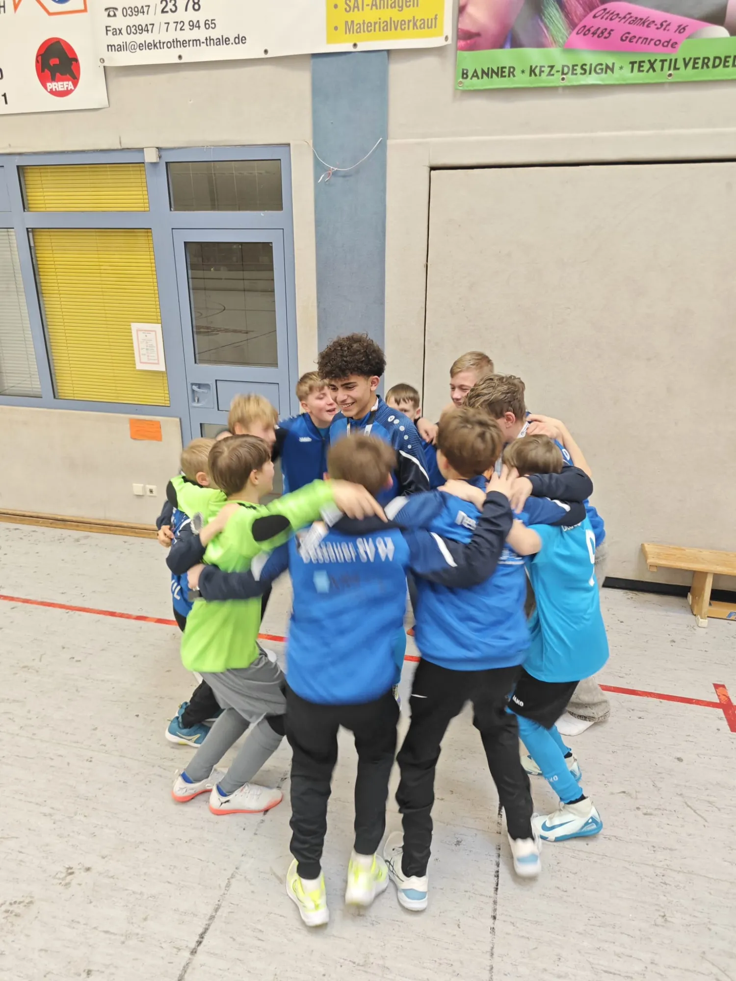 Schön war, wie toll Yosef verabschiedet wurde. Bei der Hallenlandesmeisterschaft in Thale (Platz 3), gab es nicht nur Schläge auf seinen Hinterkopf ;) – sondern auch ganz viel Mitfreude und Spaß, wir gönnen ihm natürlich den größtmöglichen Erfolg und drücken die Daumen. Auch toll war, dass wir sozusagen ein „Ablösespiel“ gegen den 1. FC Magdeburg ausmachen konnten. Wenngleich dort viele Kids von uns fehlten, war es eine tolle Erfahrung. Und, Yosef machte kein Tor, das war uns wichtig ;)