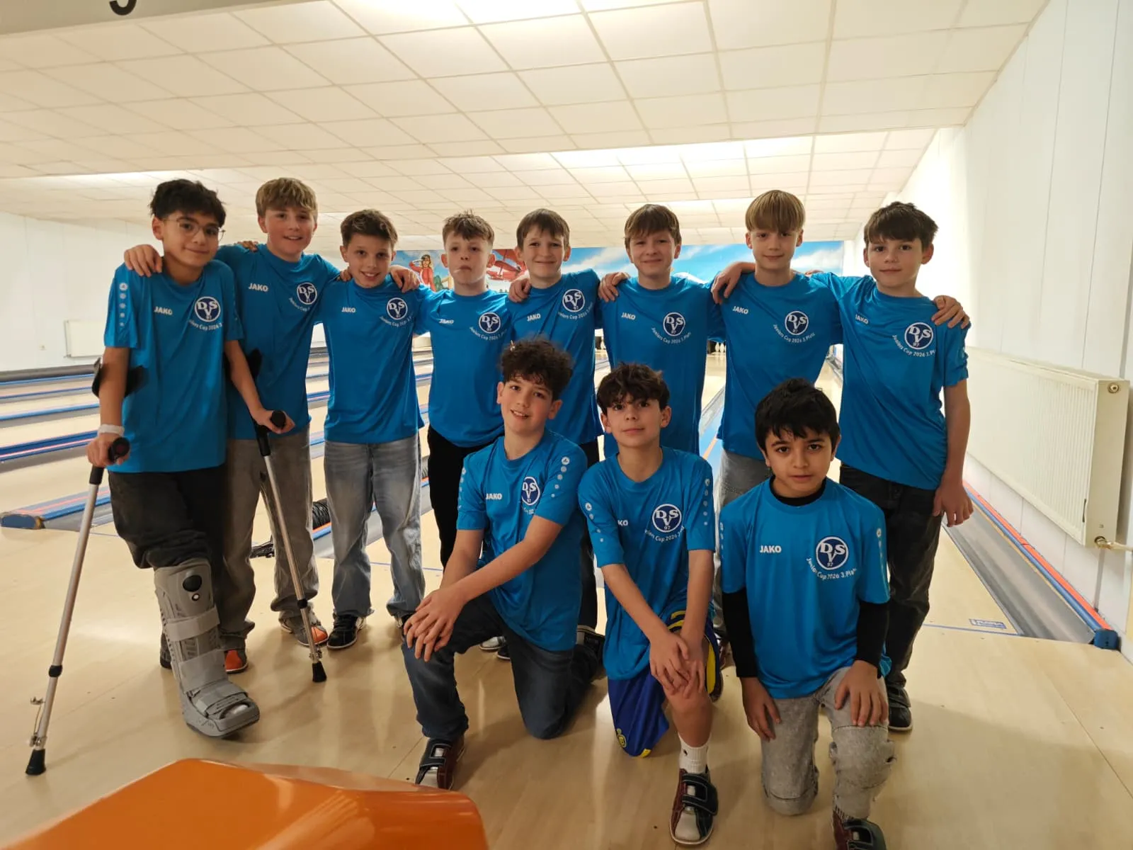 Team Juniors Cup bei der Juniors Cup Platz 3 Feier letzte Woche Freitag, Mehmet (ganz links) leider immer noch an Krücken