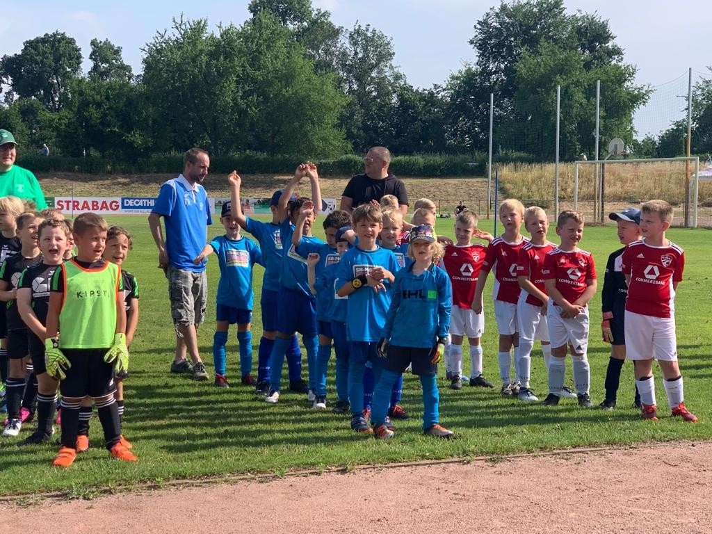 Im Finale sollte wieder der CFC aus Köthen warten und man begann stark. Schon nach 3 Minuten das 1:0 durch Carlo. Man war am Drücker, aber Köthen war extrem handlungsschnell. Sie schalteten gleich 2 Mal nach einem total verunglückten defensiven Freistoß von uns um und ließen Milo im Tor keine Chance. Doch dann, die große Chance auf das 2:2 - der TW hält, wieder Köthen handlungsschnell, langer Abstoß und wir stehen noch zu offen 3:1, die Vorentscheidung. Köthen einfach in den entscheidenden Situationen cleverer als wir, zogen auch schon sehr geschickt taktische Fouls und stoppte so unsere Offensivbemühungen meist am Anfang. Das 4:1 in der letzten Minute war dann definitiv zu hoch, aber die Konzentration war bei unseren jungen Kickern bei über 30 Grad und nur einem Wechsler auch irgendwann weg. Aber Riesenkompliment für Platz 2 von 8 Teams, man spielte guten Fußball und hatte ganz viel Spaß. jenes ist neben allem sportlichen Ehrgeiz das allerwichtigste bei so einem Turnier. Glückwunsch an das sehr gute Team vom CFC Germania Köthen.
